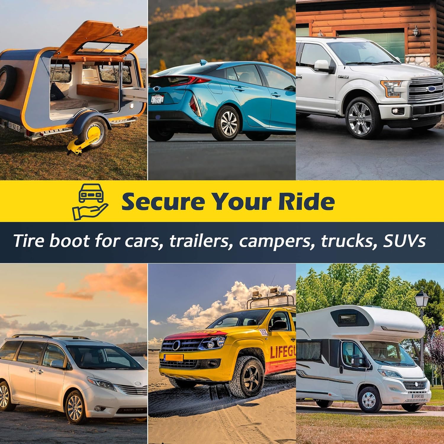 - UNIVERSALLY COMPATIBLE: FITS 99% OF VEHICLES - Designed with versatility at its core, our anti - theft system is a perfect match for 99% of tires. Whether you drive a car, trailer, truck, SUV, or camper, it's the ideal choice. The adjustable claw mechanism, a feat of engineering, can expand up to 15 inches to fit tires of all sizes. We've also included a detailed picture with comprehensive compatible tires information for a hassle - free installation.
