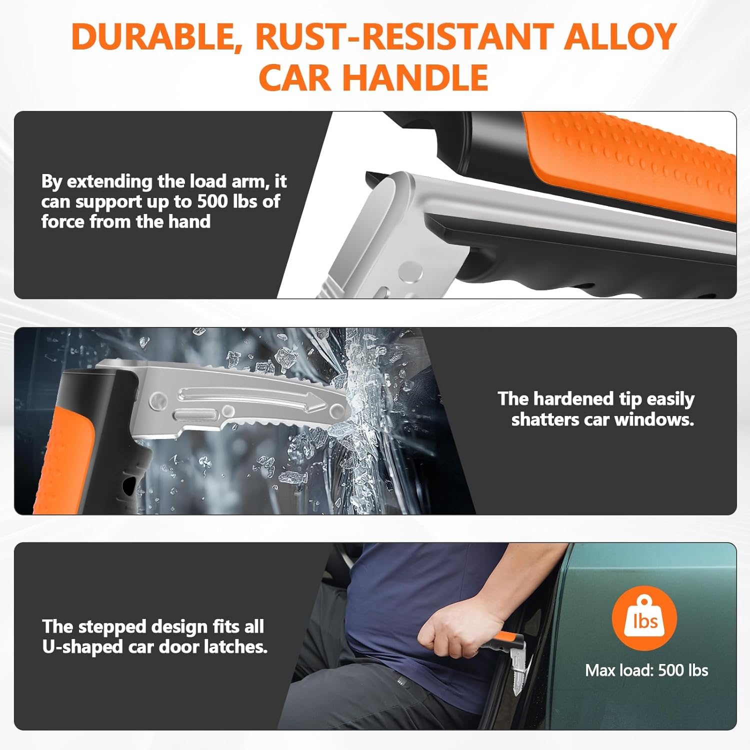 - Supports up to 500 Pounds: The car handle is made of premium forged steel, featuring rust and corrosion resistance. Its extended and reinforced design supports up to 500 pounds, enhancing safety for seniors when getting in and out of the car.