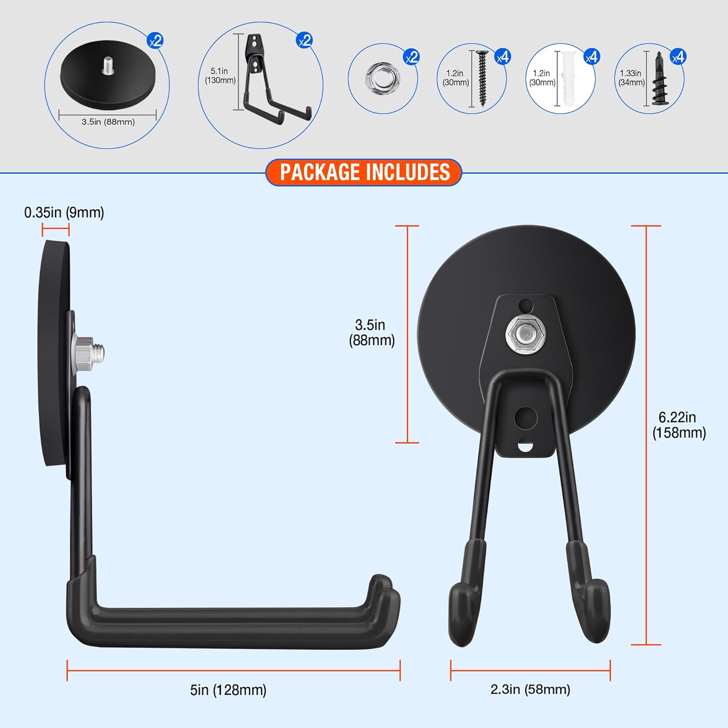 - 🧲[4PCS Magnetic Hooks For Hanging] Large strong magnetic hook present an efficient solution for optimizing vertical storage space within your garage organization system. These multifunctional extra magnet storage hooks are suitable for both indoor and outdoor settings, including garages, gardens, kitchen, warehouse, cruise cabin, utility rooms and indoor/outdoor